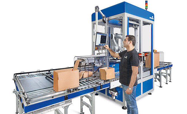 La solution de protection est insérée dans le carton avec la meilleure position de manière entièrement automatique. Le remplissage par le haut, le bas et la dépose de pads de protections sont possibles. Les clients ont également la possibilité d'intégrer un système de contrôle qualité par le système de vision. Cela permet d’analyser le scénario d’emballage en fin de ligne et d’évaluer si un complément de matériau est nécessaire — jusqu’à ce que les marchandises soient parfaitement protégées.